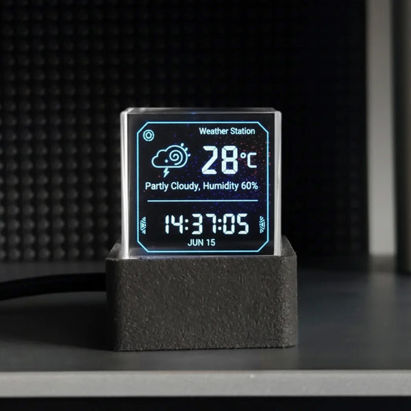 Beyond its stunning visual display, EchoGlass functions as a smart weather station and digital clock, providing you with essential information in a futuristic and engaging format. Stay informed in style!