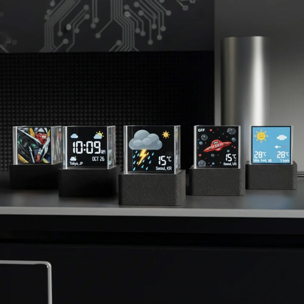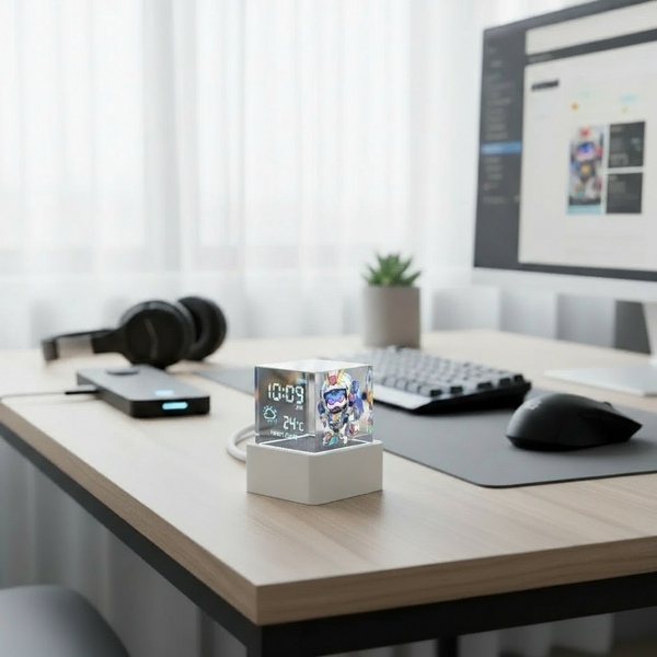 EchoGlass isn't just a clock; it's a dynamic holographic display that brings your space to life with animated GIFs and smart weather updates. It's a captivating blend of art and utility, designed to impress.